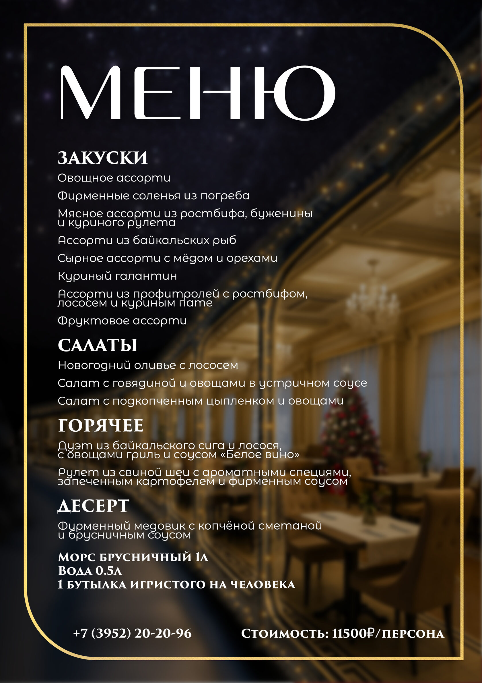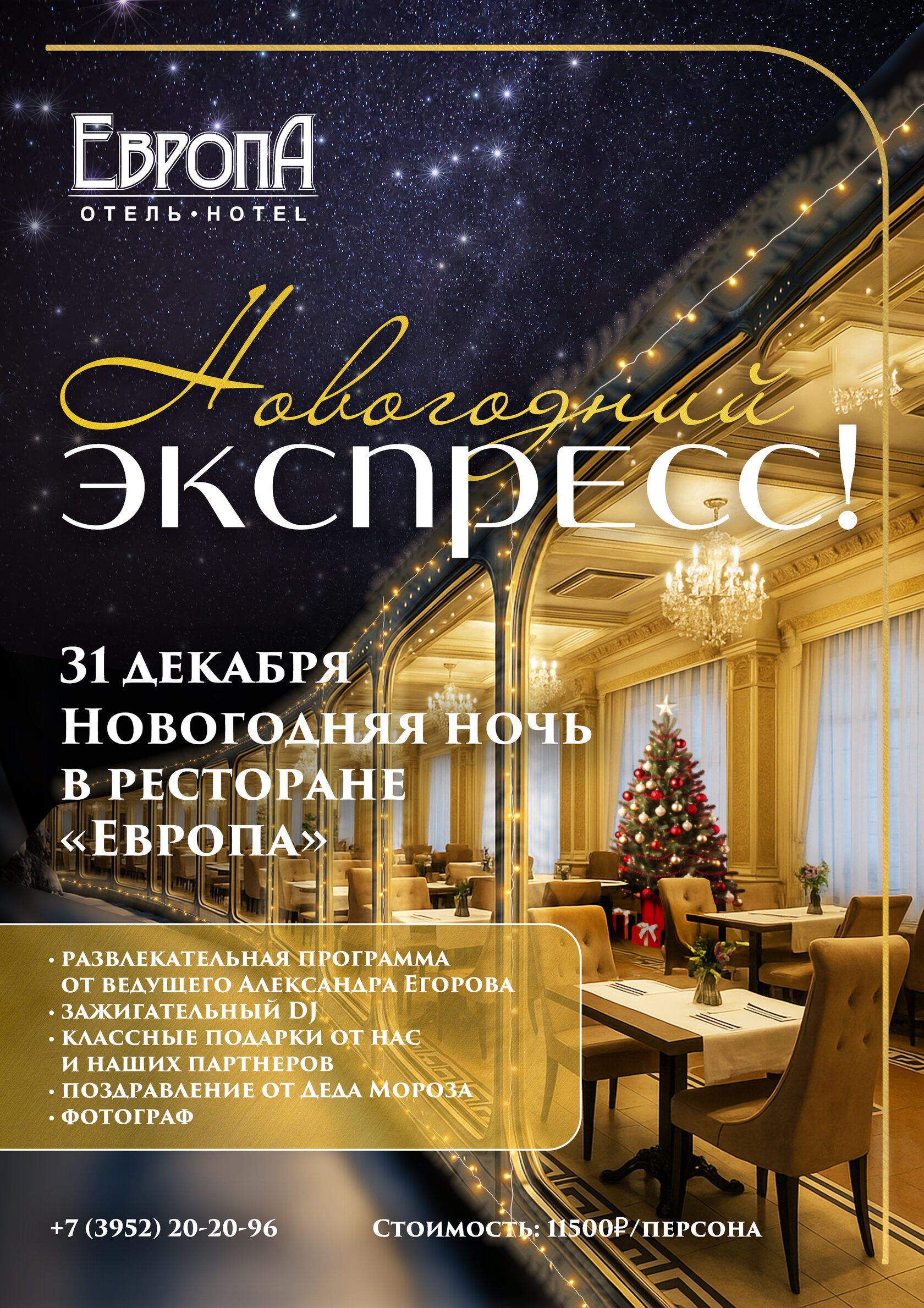 В эту ночь ресторан превратится в экспресс, который перенесёт вас в мир новогодней сказки: свет гирлянд, аромат изысканных блюд, звуки музыки и искренний смех гостей создадут атмосферу, которую невозможно забыть.